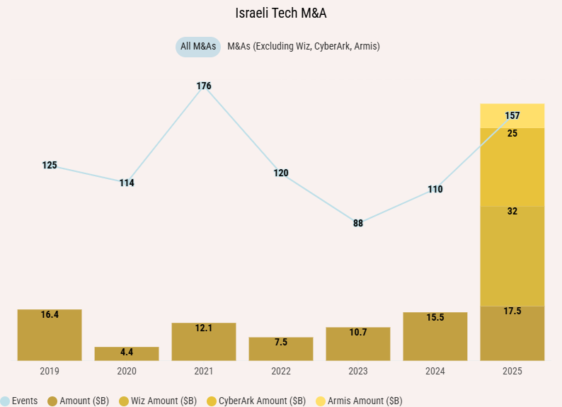 The ecosystem data reflects this calibration. In 2025, Israel recorded its highest M&A activity on record, with 157 transactions and $82.3B in disclosed deal value. Strategic buyers demonstrated strong demand for scale-ready companies and proven capabilities.